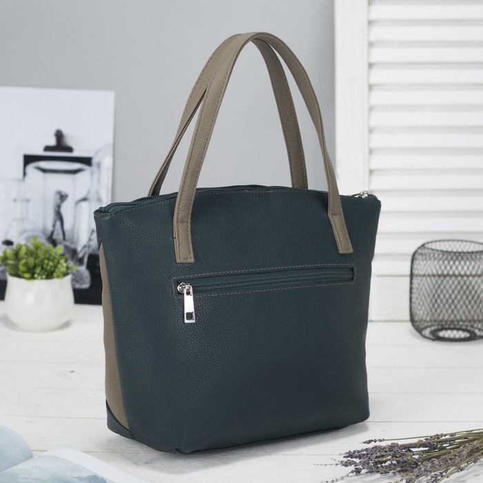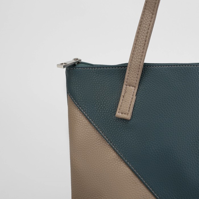Сумка женская на молнии, 1 отдел, наружный карман, цвет тёмно-бежевый/зелёный