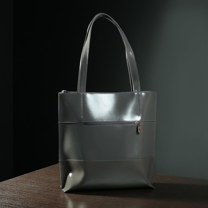 Сумка женская на молнии, 1 отдел, наружный карман, цвет тёмно-серый гладкий шик/сафьян шик