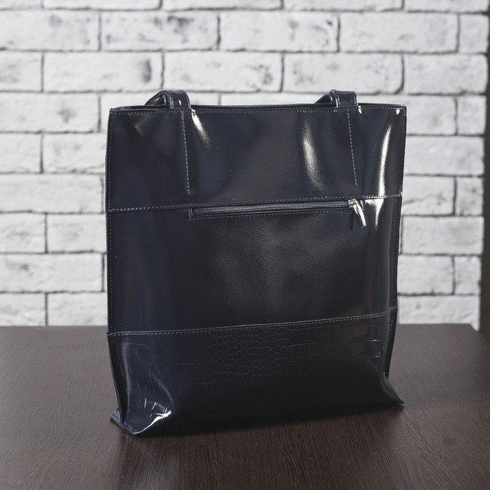 Сумка женская на молнии, 1 отдел, наружный карман, цвет тёмно-синий гладкий шик/кайман шик