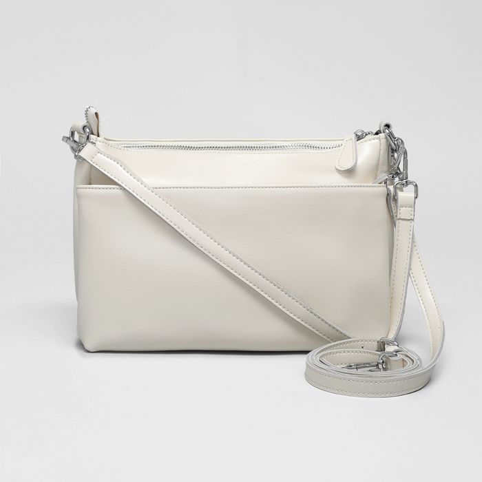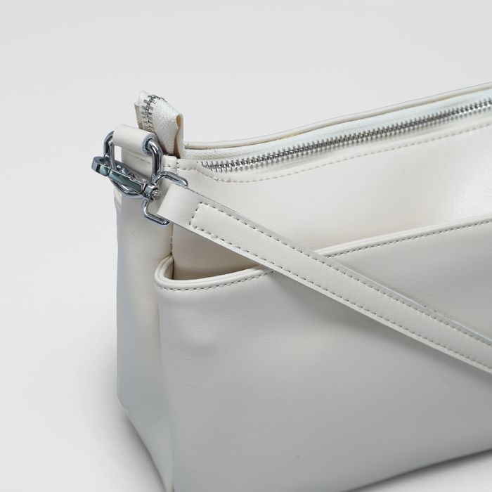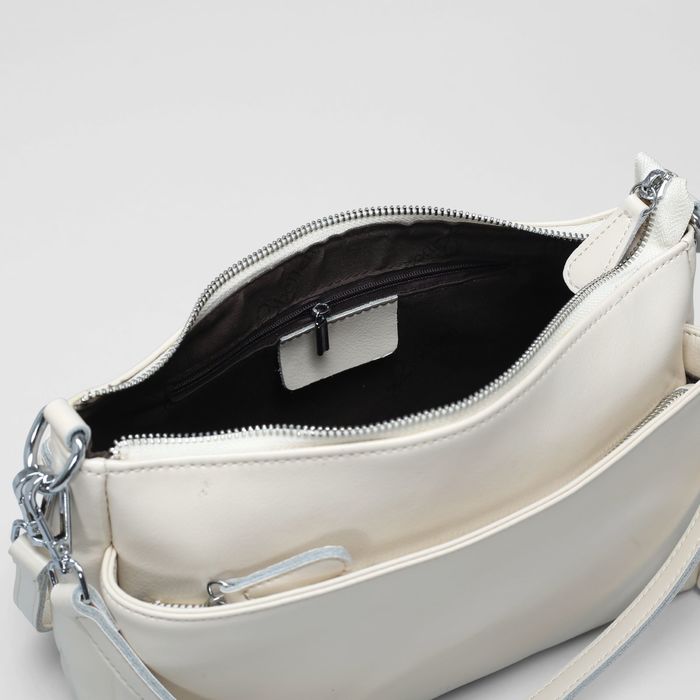 Сумка женская на молнии, 1 отдел, наружный карман, длинный ремень, цвет бежевый