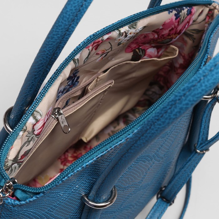 Сумка женская на молнии, 1 отдел, наружный карман, длинный ремень, цвет бирюзовый