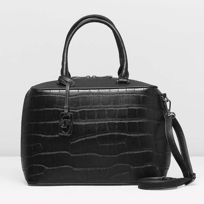 Сумка женская на молнии, 1 отдел, наружный карман, длинный ремень, цвет чёрный