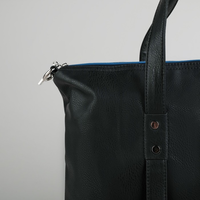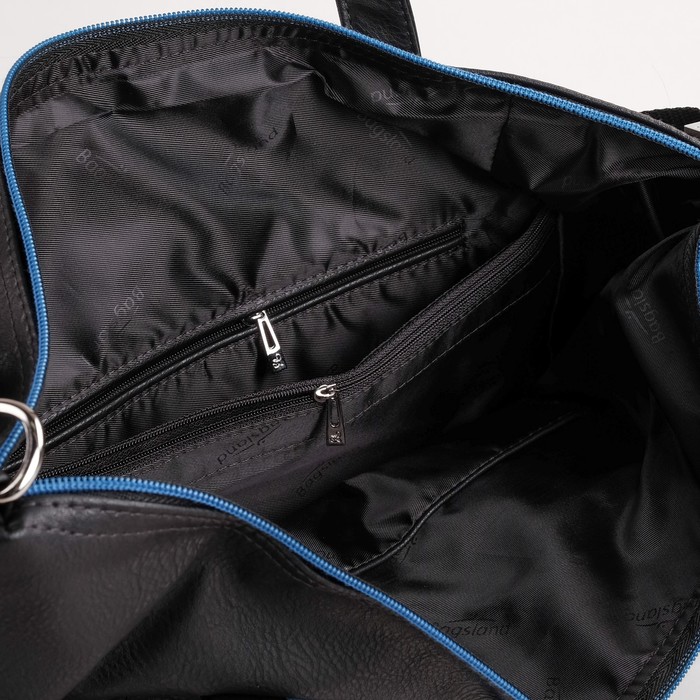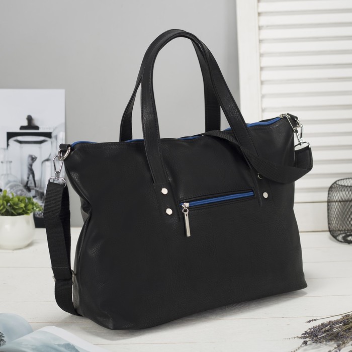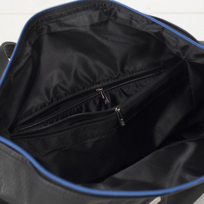 Сумка женская на молнии, 1 отдел, наружный карман, длинный ремень, цвет cиний/чёрный