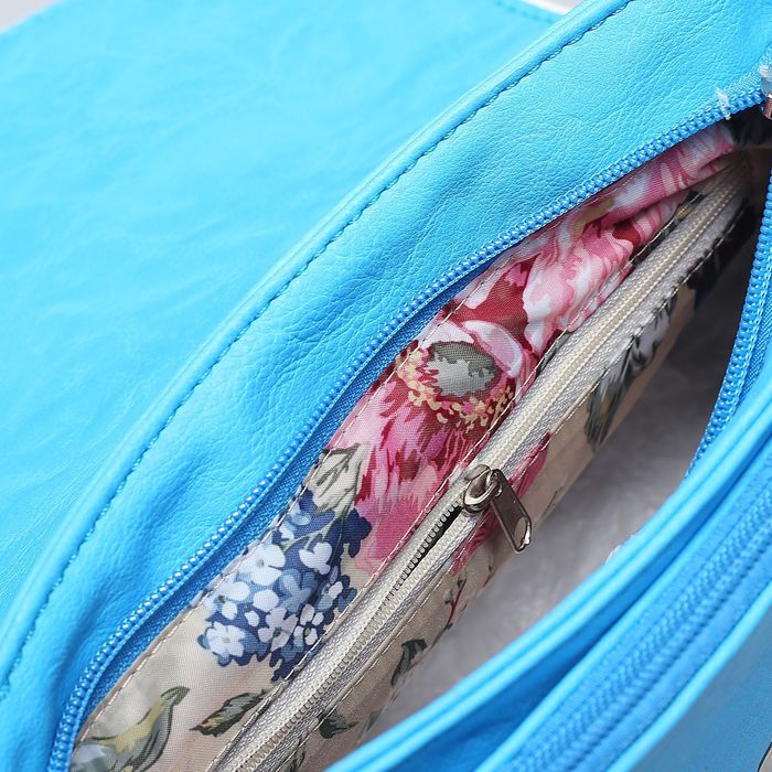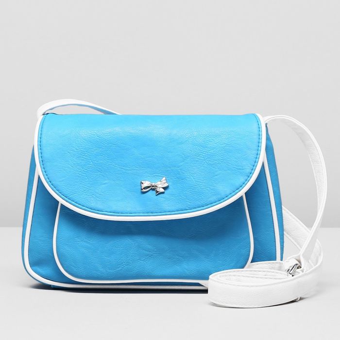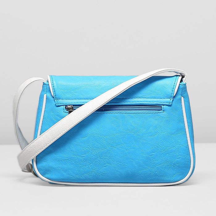 Сумка женская на молнии, 1 отдел, наружный карман, длинный ремень, цвет голубой/белый