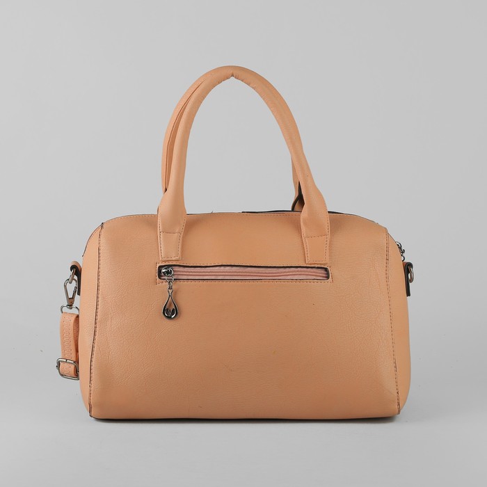 Сумка женская на молнии, 1 отдел, наружный карман, длинный ремень, цвет персиковый
