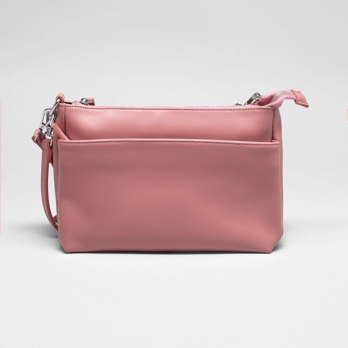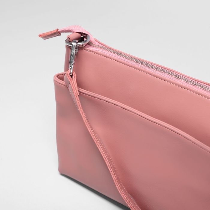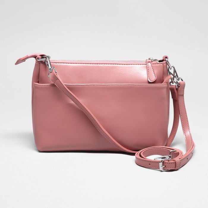 Сумка женская на молнии, 1 отдел, наружный карман, длинный ремень, цвет розовый
