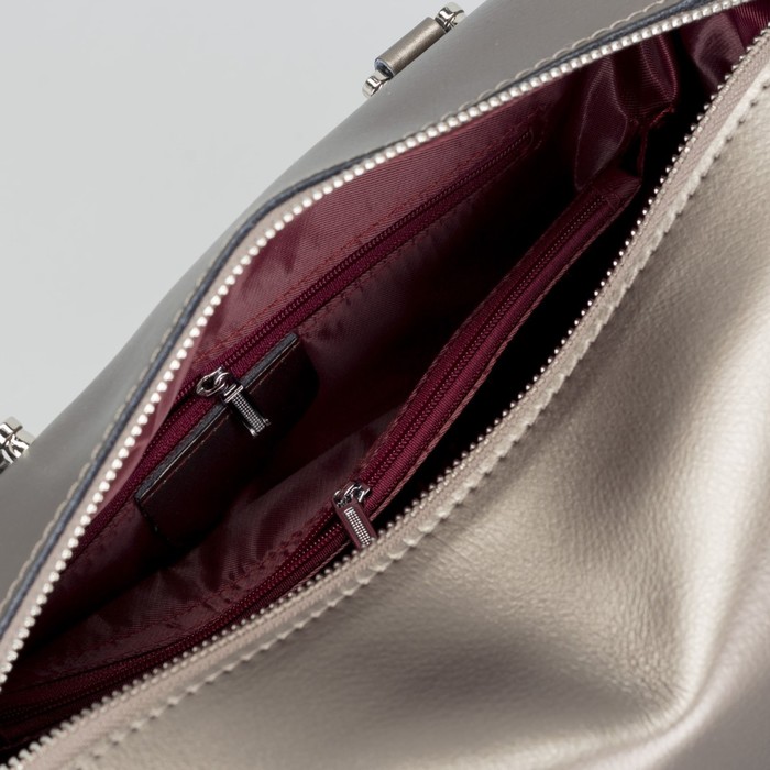 Сумка женская на молнии, 1 отдел, наружный карман, длинный ремень, цвет серебристый