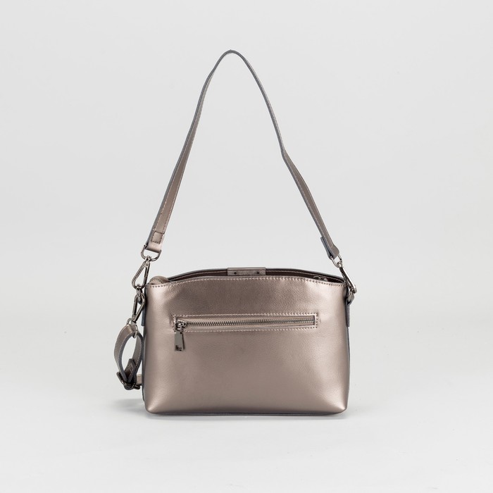 Сумка женская на молнии, 1 отдел, наружный карман, длинный ремень, цвет серебристый