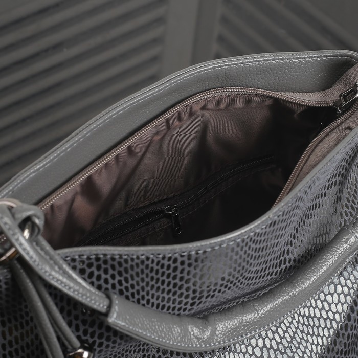 Сумка женская на молнии, 1 отдел, наружный карман, длинный ремень, цвет серый