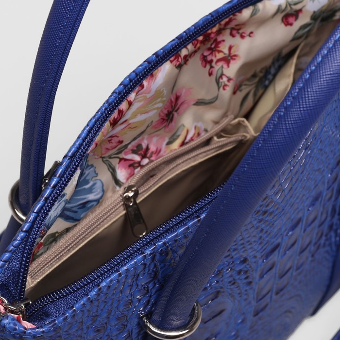 Маленькие, казалось бы, незначительные элементы зачастую завершают, дополняют образ, подчёркивают статус, стиль и вкус своего обладателя. Сумка женская на молнии, 1 отдел, наружный карман, длинный ремень, цвет синий — одна из подобных деталей. Это вещь достойного качества, которая может стать прекрасным подарком по любому поводу.