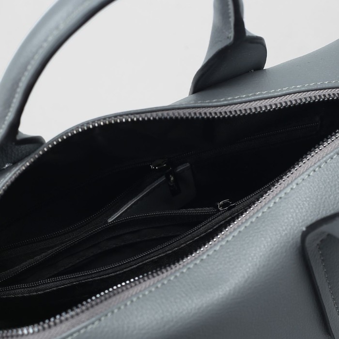 Сумка женская на молнии, 1 отдел, наружный карман, длинный ремень, цвет светло-серый