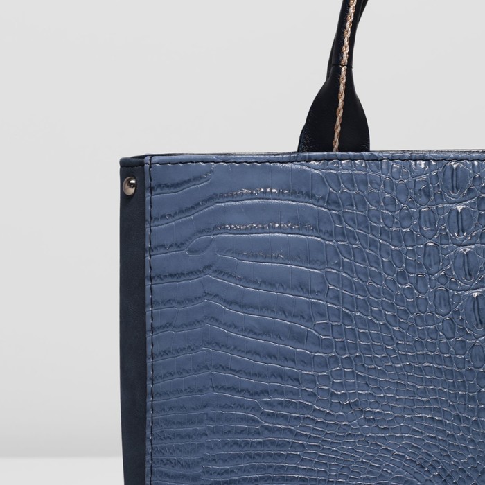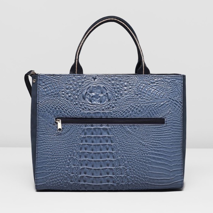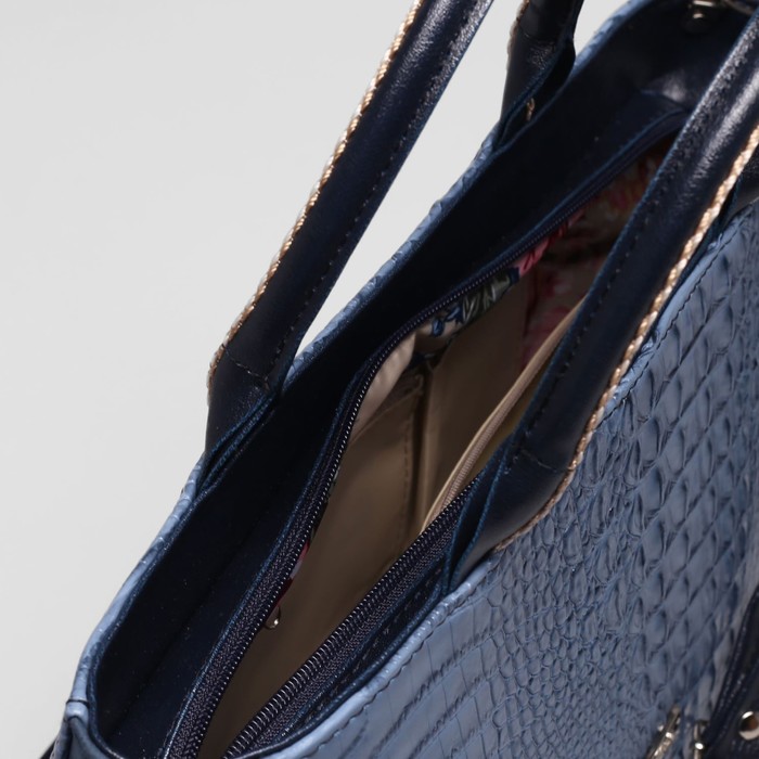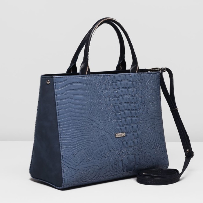 Сумка женская на молнии, 1 отдел, наружный карман, длинный ремень, цвет тёмно-голубой