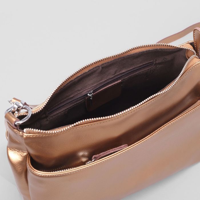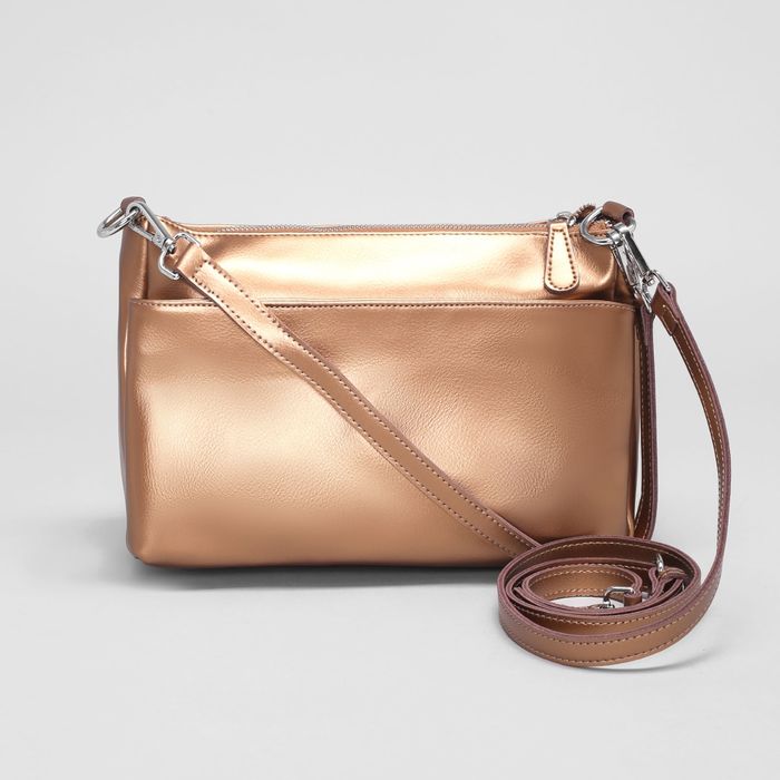 Сумка женская на молнии, 1 отдел, наружный карман, длинный ремень, цвет золотой