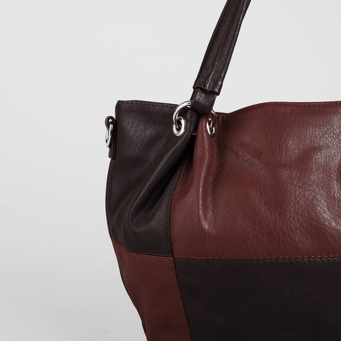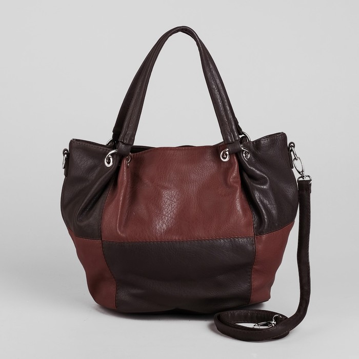 Сумка женская на молнии, 1 отдел, наружный карман, длинный ремень, коричневый/тёмно-коричневый