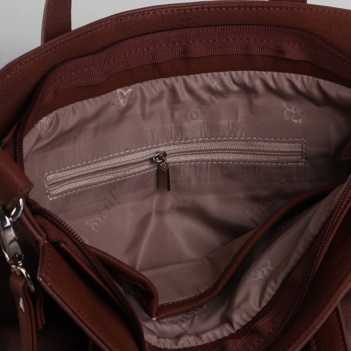 Сумка женская на молнии, 1 отдел, наружный карман, коричневая
