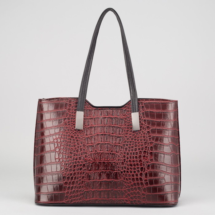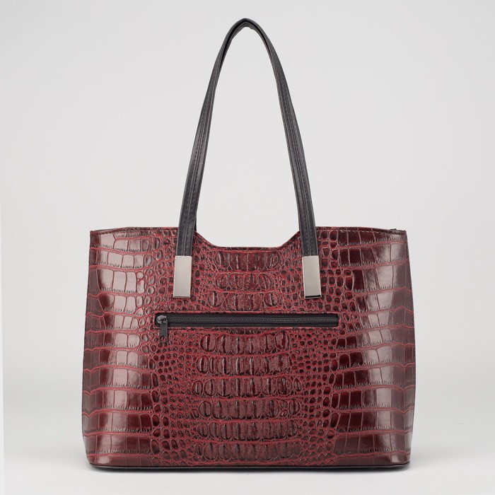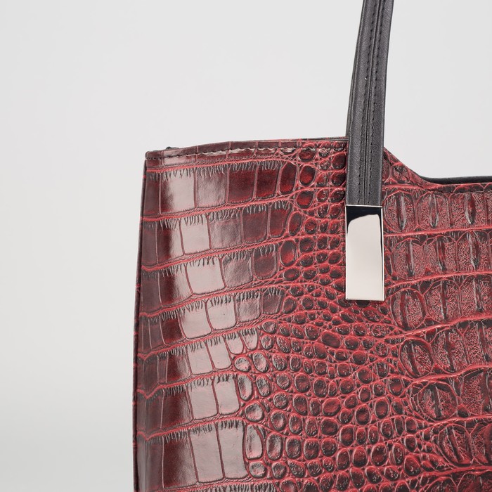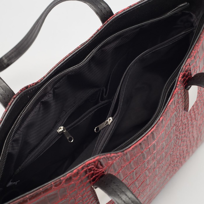 Сумка женская на молнии, 1 отдел, наружный карман, крокодил, цвет красный