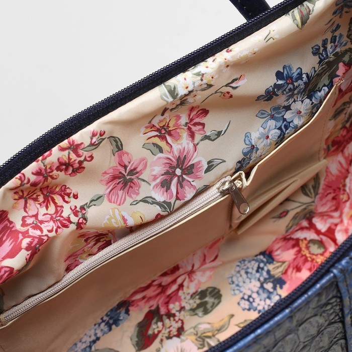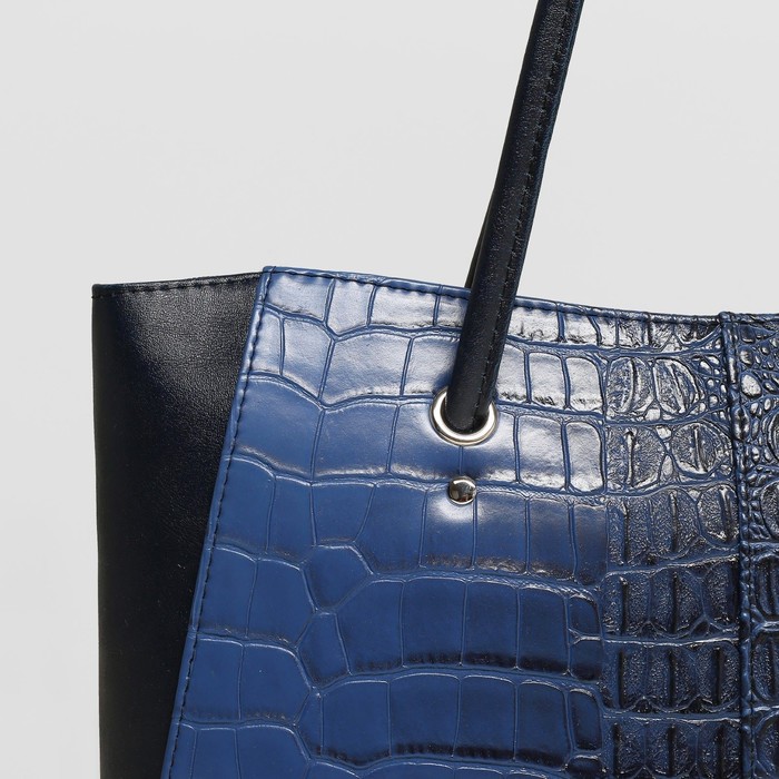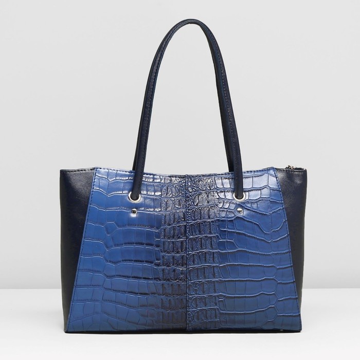 Сумка женская на молнии, 1 отдел, наружный карман, крокодил, цвет синий