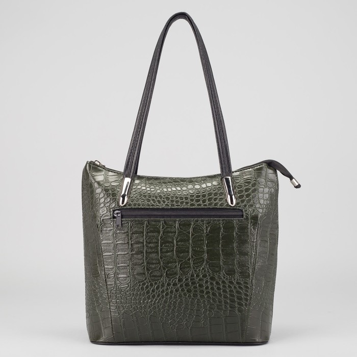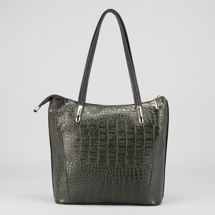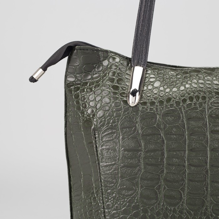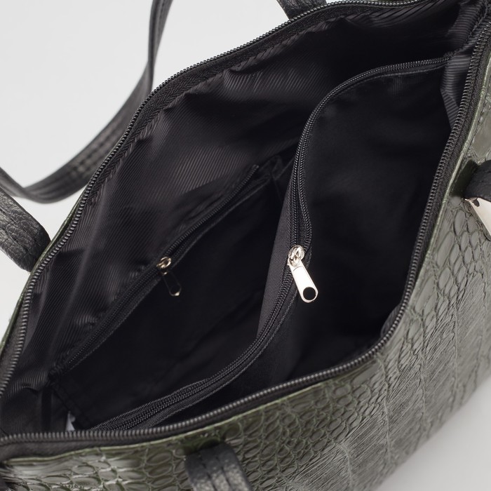 Сумка женская на молнии, 1 отдел, наружный карман, крокодил, цвет тёмно-зелёный