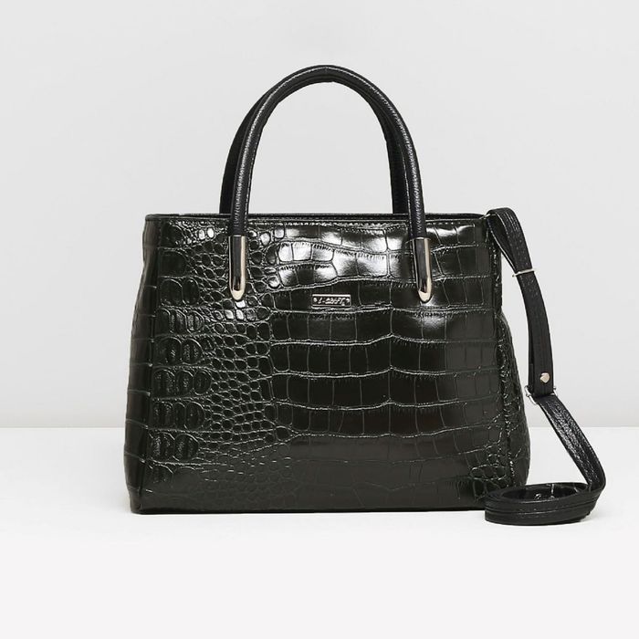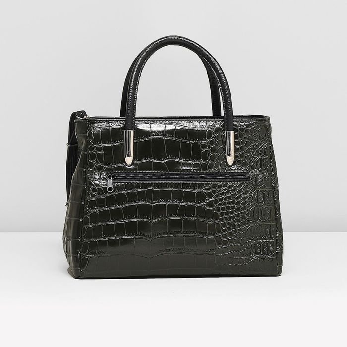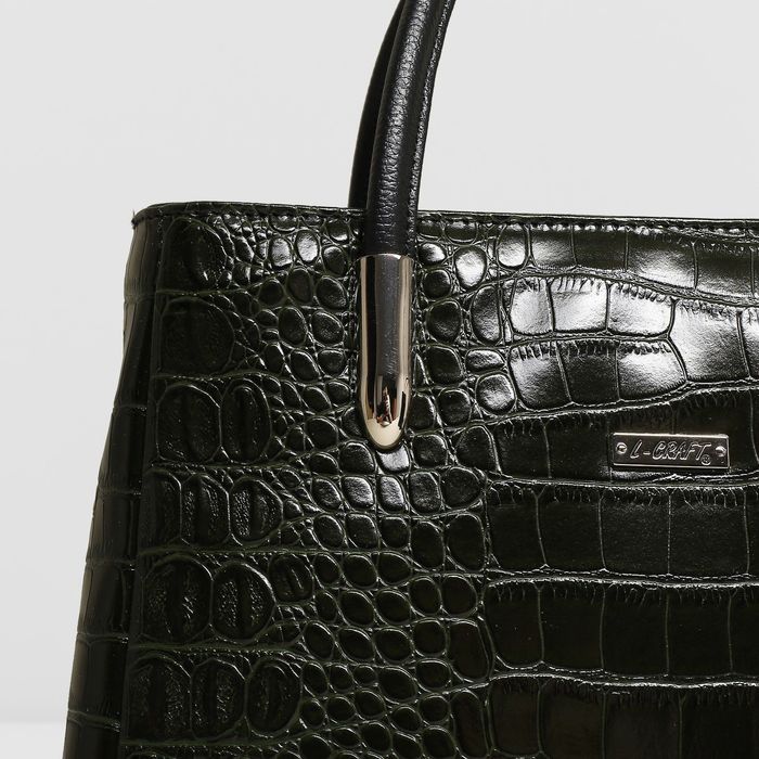 Сумка женская на молнии, 1 отдел, наружный карман, крокодил, цвет тёмно-зелёный