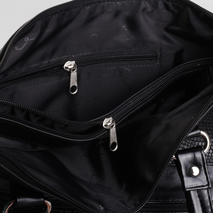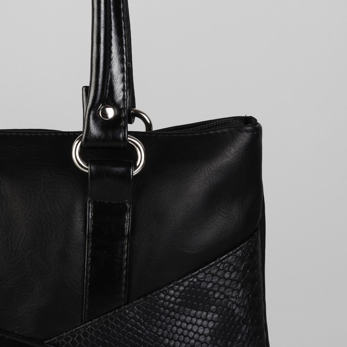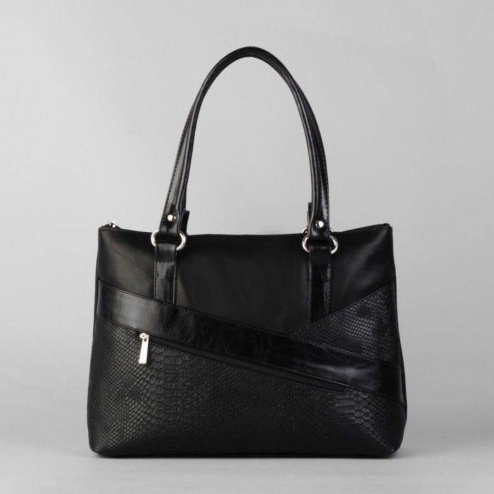 Сумка женская на молнии, 1 отдел, наружный карман, змея, цвет чёрный