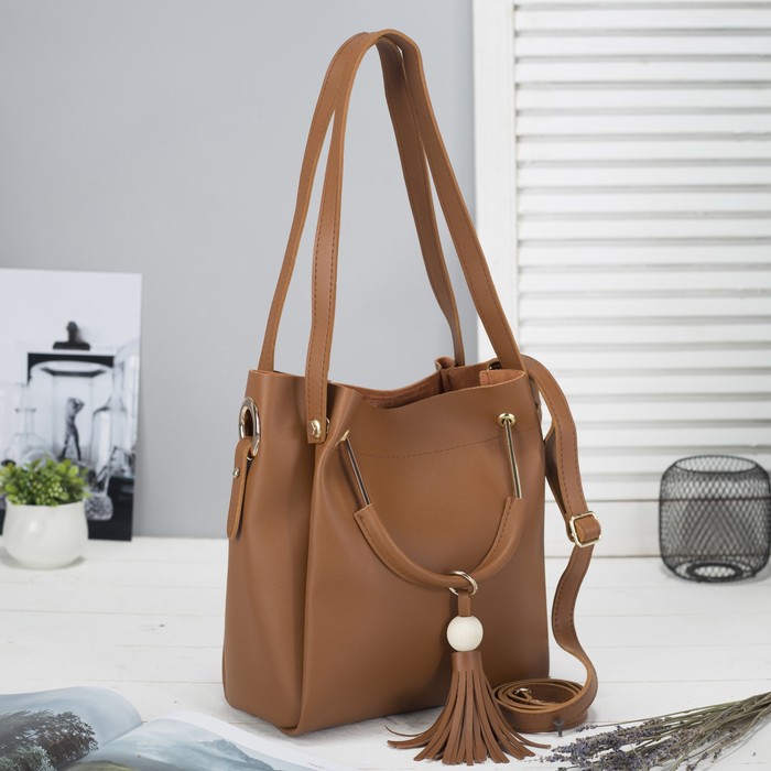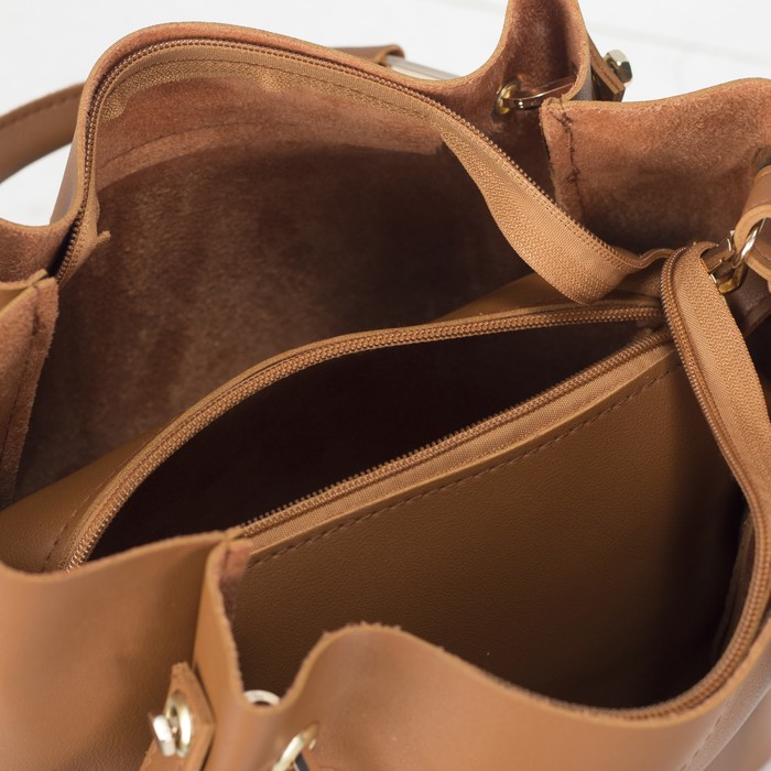 Сумка женская на молнии, 1 отдел с косметичкой, цвет коричневый