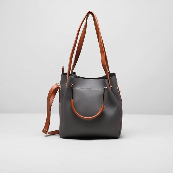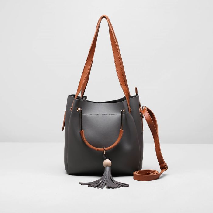 Сумка женская на молнии, 1 отдел с косметичкой, цвет серый