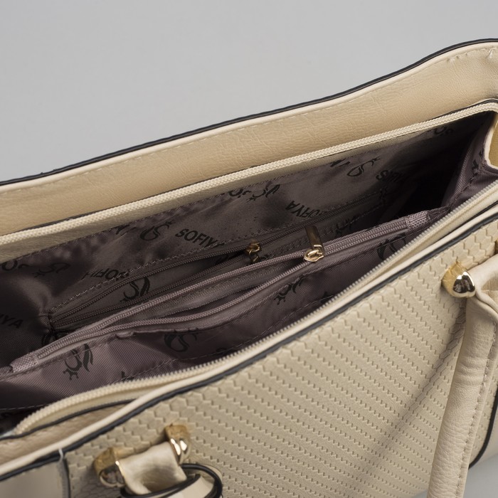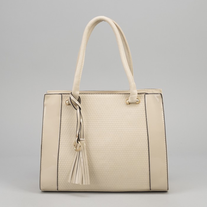Сумка женская на молнии, 1 отдел с перегородкой, 1 наружный карман, бежевая