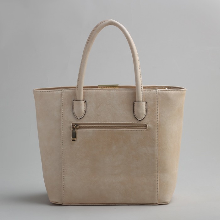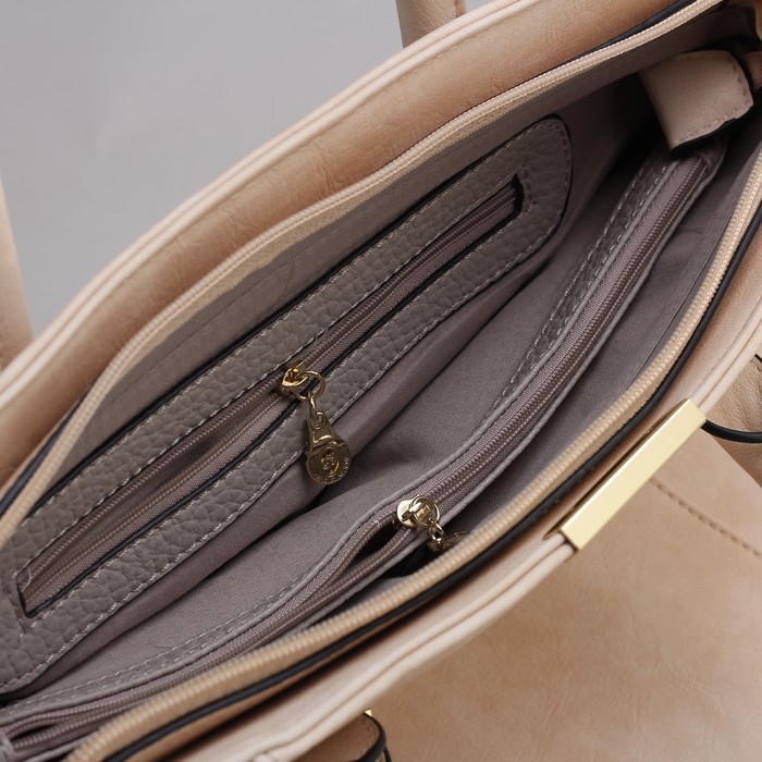 Сумка женская на молнии, 1 отдел с перегородкой, 1 наружный карман, бежевая