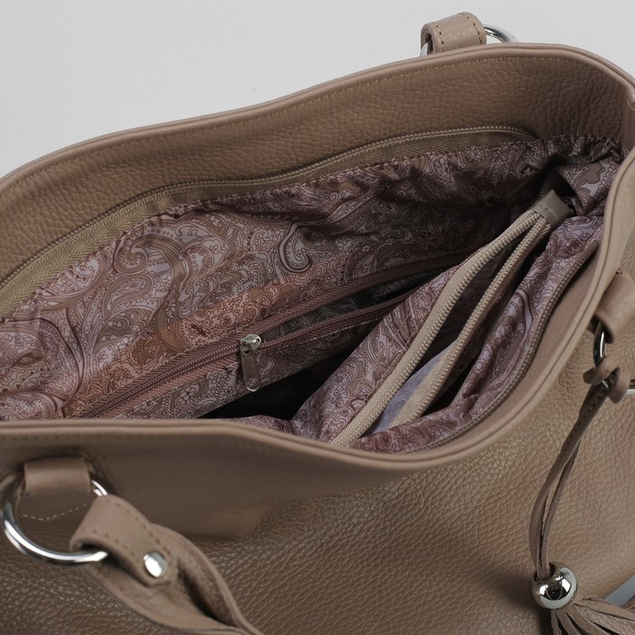Сумка женская на молнии, 1 отдел с перегородкой, 1 наружный карман, бежевый флотер