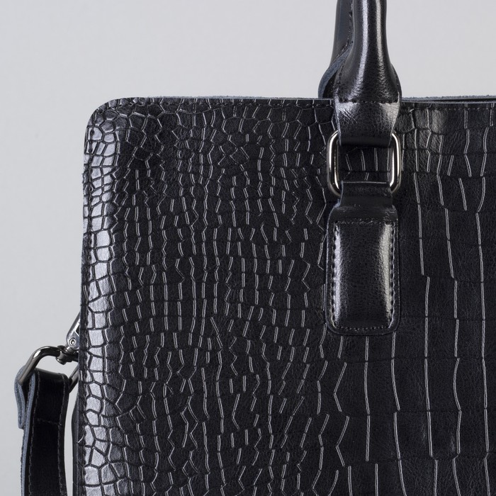Классическая цветовая гамма и стилизация под кожу рептилии сделают данную модель базовой вещью в вашем гардеробе.