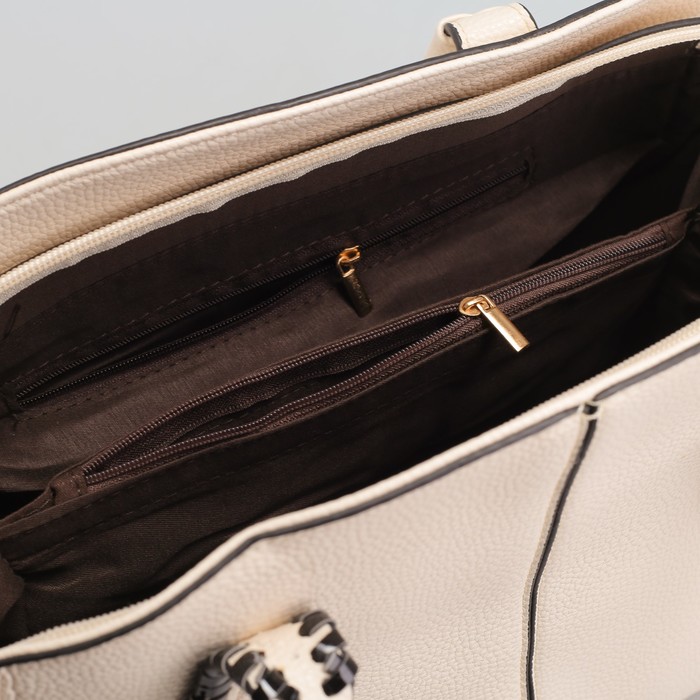 Сумка женская на молнии, 1 отдел с перегородкой, 1 наружный карман, цвет бежевый