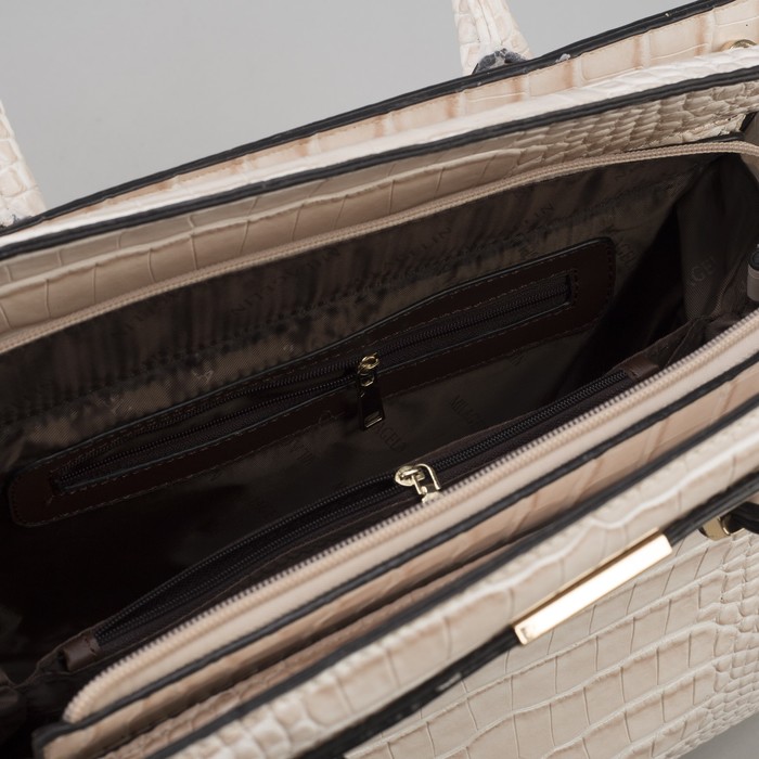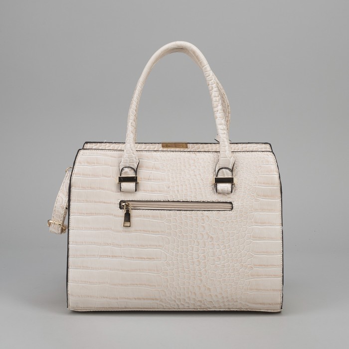 Сумка женская на молнии, 1 отдел с перегородкой, 1 наружный карман, длинный ремень, бежевая
