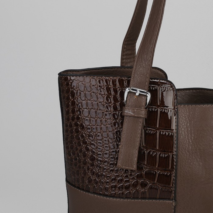Сумка женская на молнии, 1 отдел с перегородкой, 1 наружный карман, коричневая
