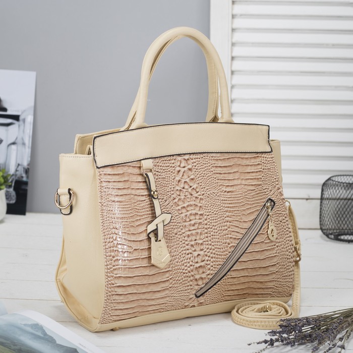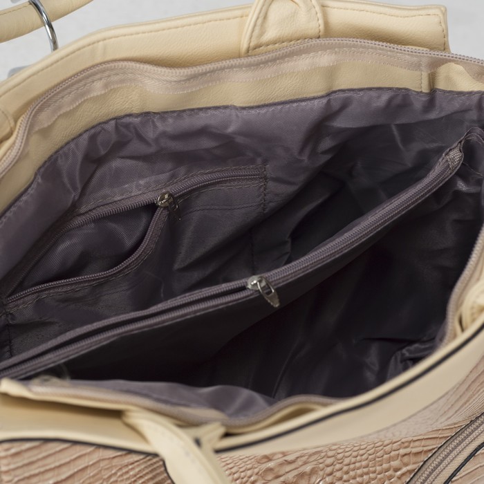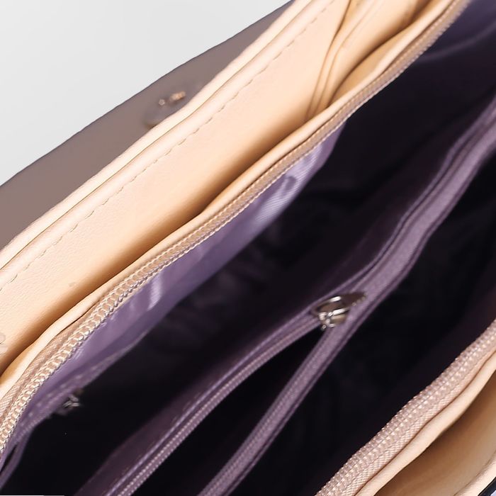 Сумка женская на молнии, 1 отдел с перегородкой, 2 наружных кармана, длинный ремень, цвет бежевый