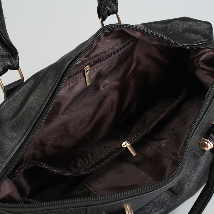 Сумка женская на молнии, 1 отдел с перегородкой, 2 наружных кармана, длинный ремень, цвет чёрный