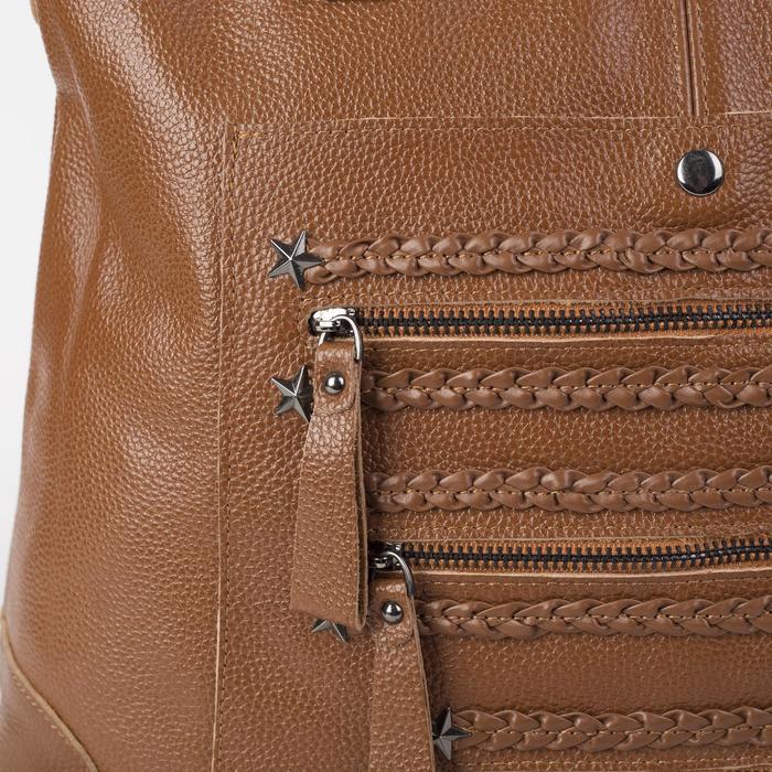 Сумка женская на молнии, 1 отдел с перегородкой, 2 наружных кармана, длинный ремень, цвет рыжий