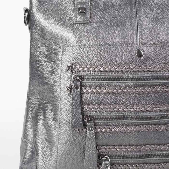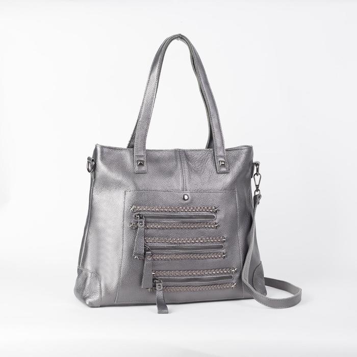 Сумка женская на молнии, 1 отдел с перегородкой, 2 наружных кармана, длинный ремень, цвет серебристый