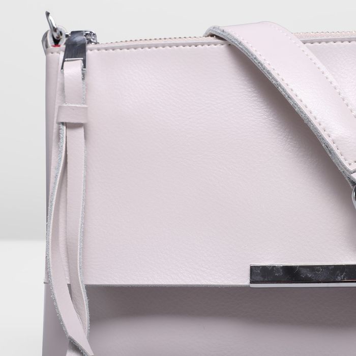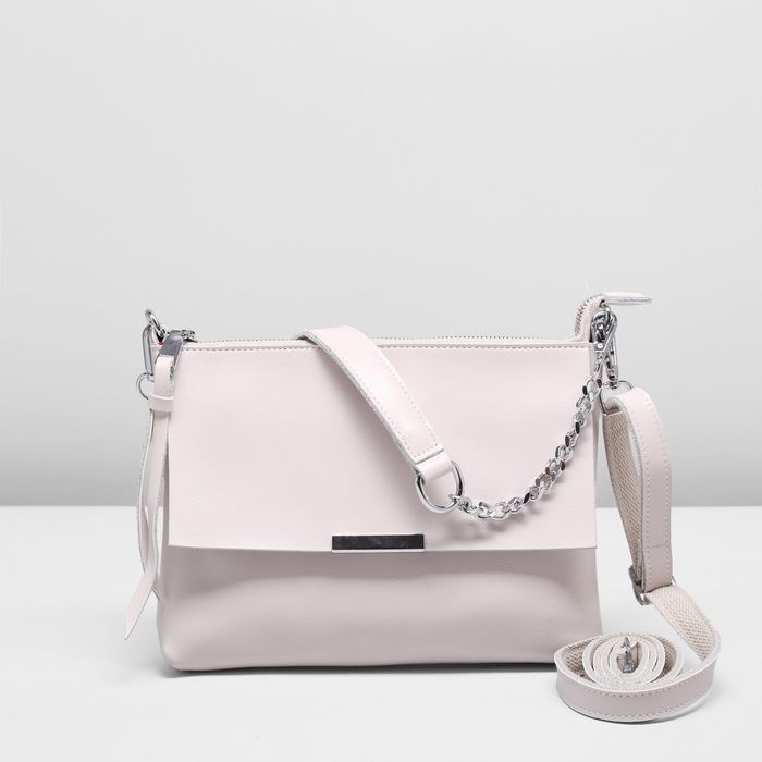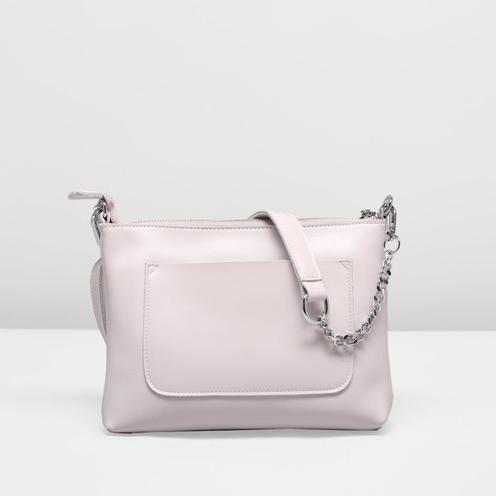 Сумка женская на молнии, 1 отдел с перегородкой, 2 наружных кармана, длинный ремень, цвет светло-серый