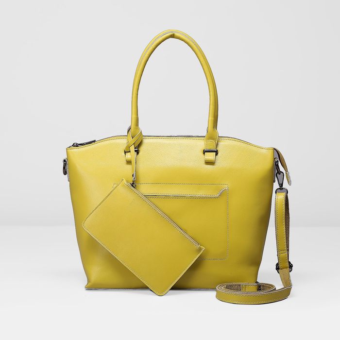 Сумка женская на молнии, 1 отдел с перегородкой, 2 наружных кармана, длинный ремень, цвет жёлтый
