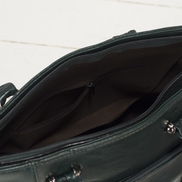 Сумка женская на молнии, 1 отдел с перегородкой, 2 наружных кармана, зелёная