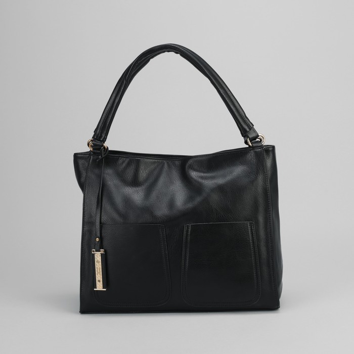 Сумка женская на молнии, 1 отдел с перегородкой, 3 наружных кармана, чёрная