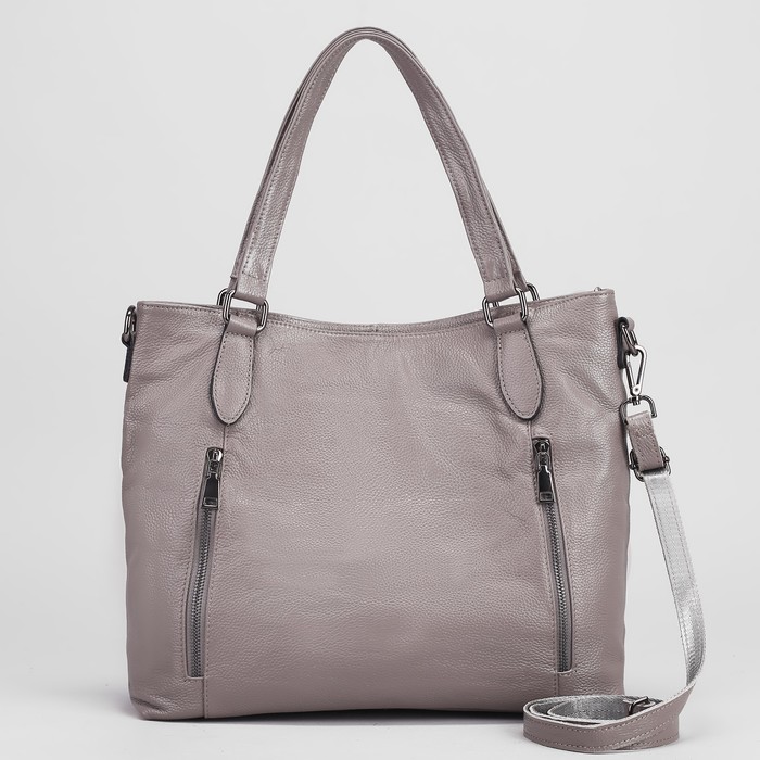 Сумка женская на молнии, 1 отдел с перегородкой, 3 наружных кармана, цвет серый