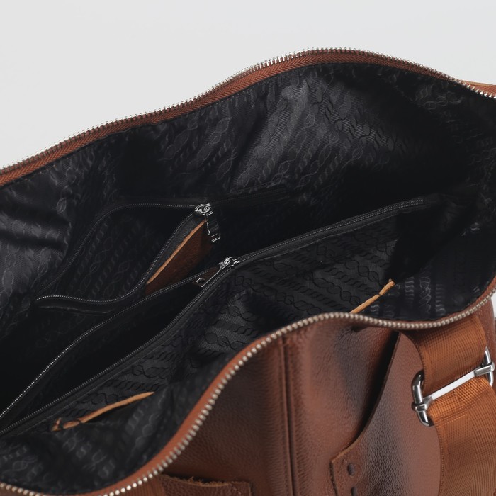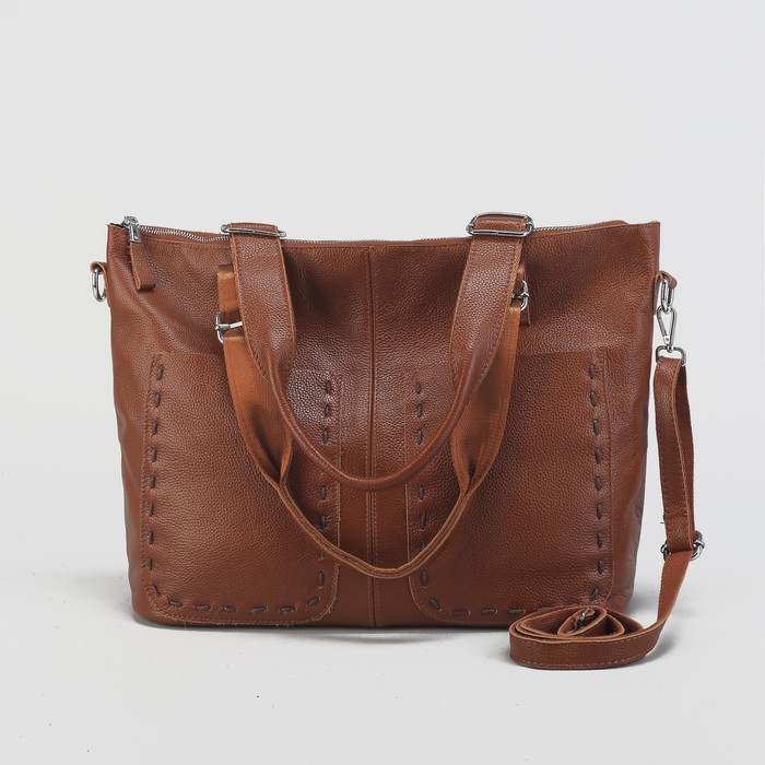 Сумка женская на молнии, 1 отдел с перегородкой, 3 наружных кармана, длинный ремень, цвет рыжий