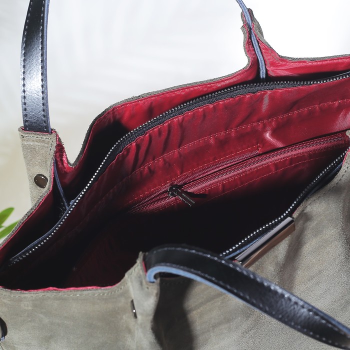 Сумка женская на молнии, 1 отдел с перегородкой, 3 наружных кармана, длинный ремень, цвет серо-зелёный