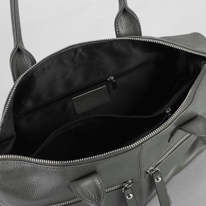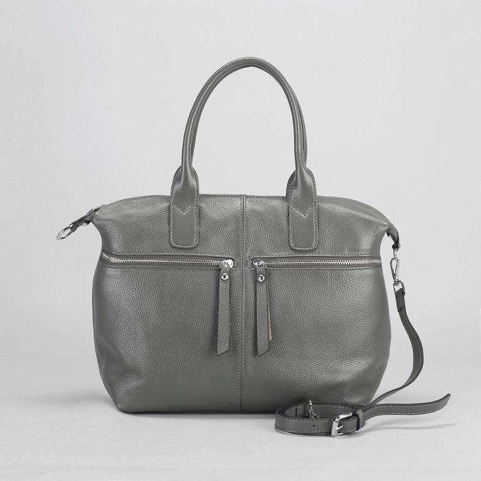 Сумка женская на молнии, 1 отдел с перегородкой, 3 наружных кармана, длинный ремень, цвет серый