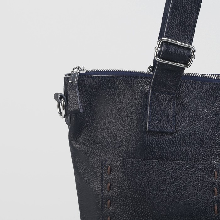 Сумка женская на молнии, 1 отдел с перегородкой, 3 наружных кармана, длинный ремень, цвет синий