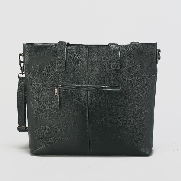 Сумка женская на молнии, 1 отдел с перегородкой, 3 наружных кармана, длинный ремень, цвет зелёный