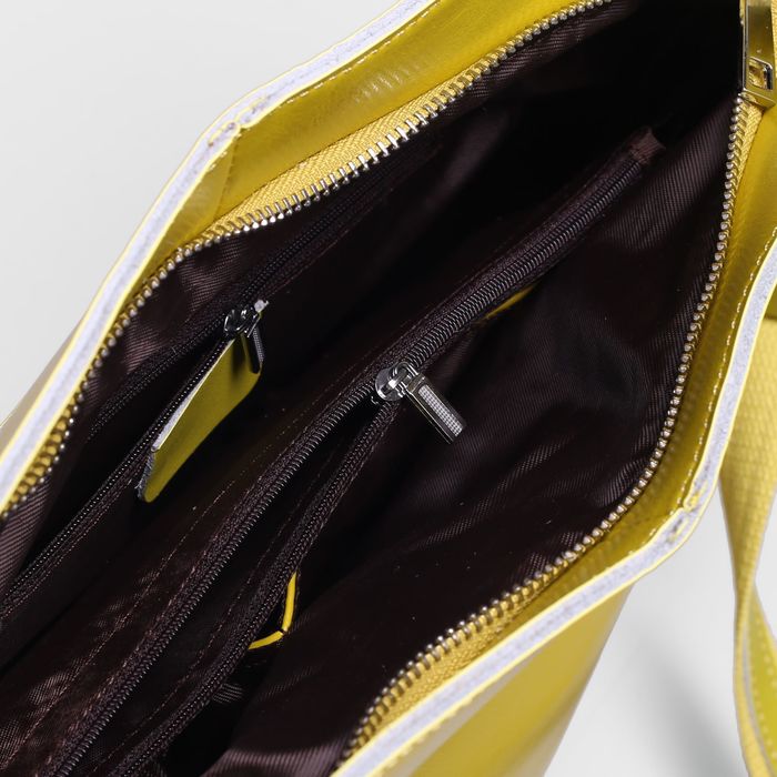 Сумка женская на молнии, 1 отдел с перегородкой, 3 наружных кармана, длинный ремень, цвет жёлтый