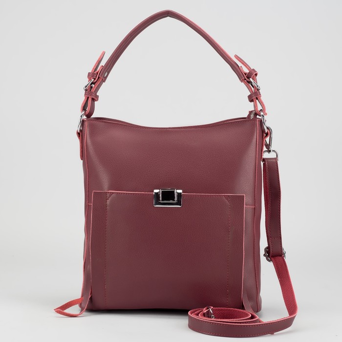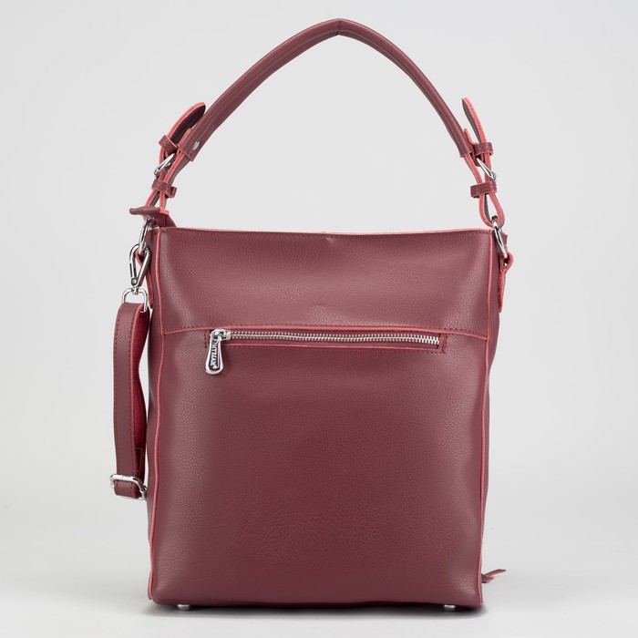 Сумка женская на молнии, 1 отдел с перегородкой, 4 наружных кармана, длинный ремень, цвет бордовый