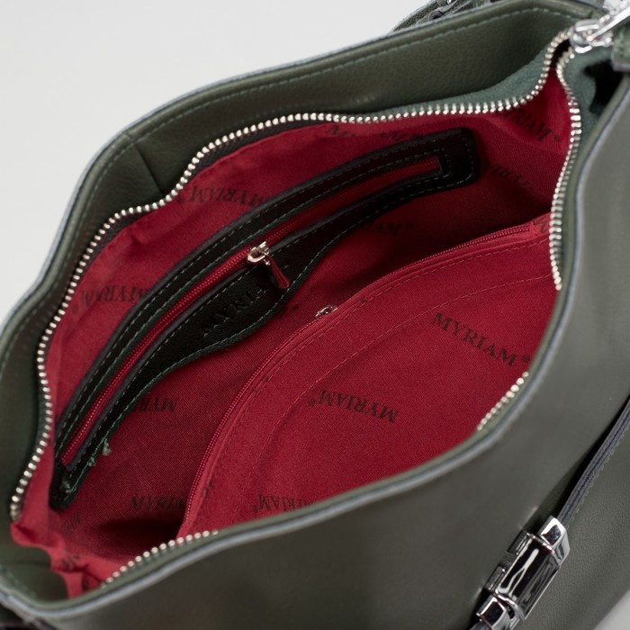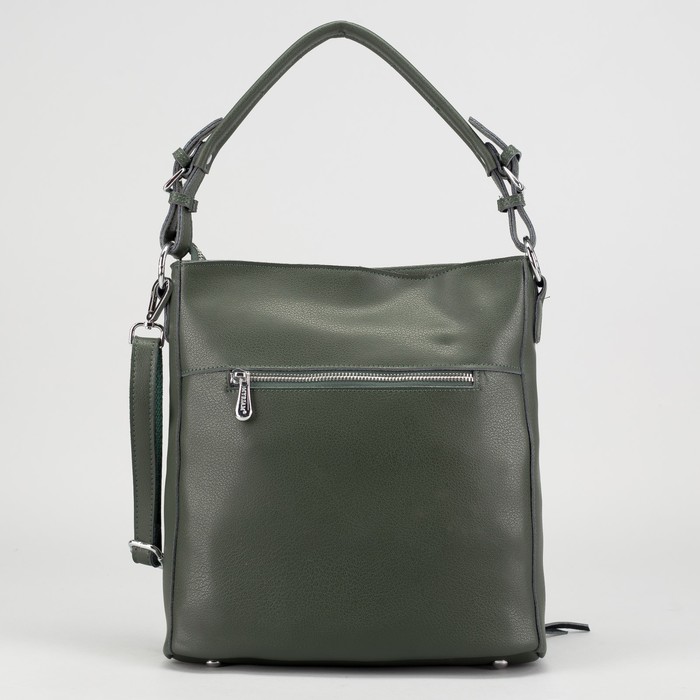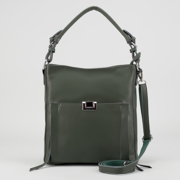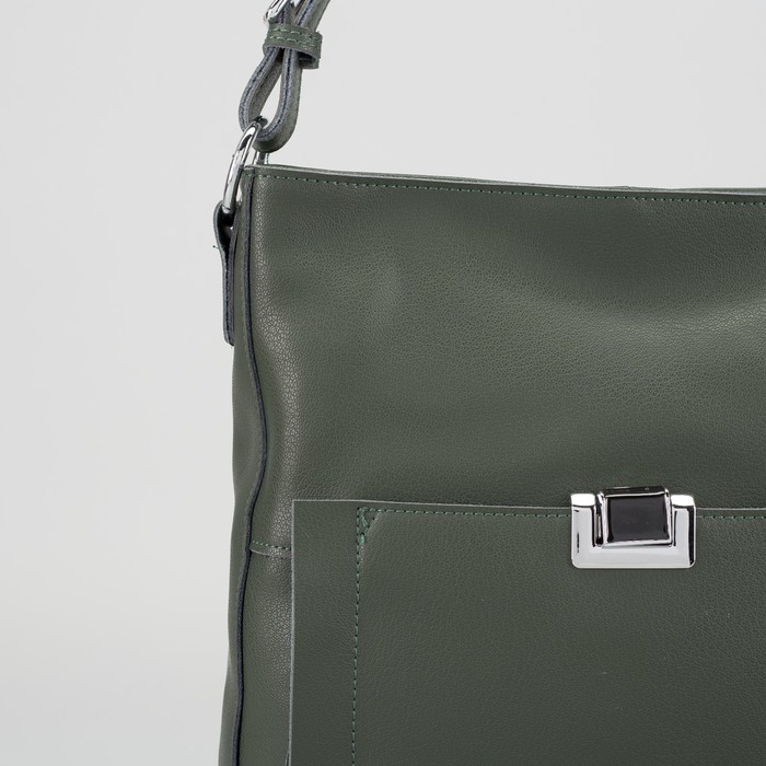 Сумка женская на молнии, 1 отдел с перегородкой, 4 наружных кармана, длинный ремень, цвет зелёный